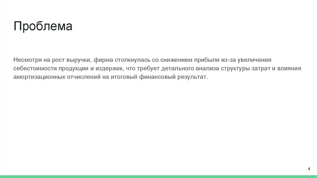 ПроблемаНесмотря на рост выручки, фирма столкнулась со снижением прибыли из-за увеличения