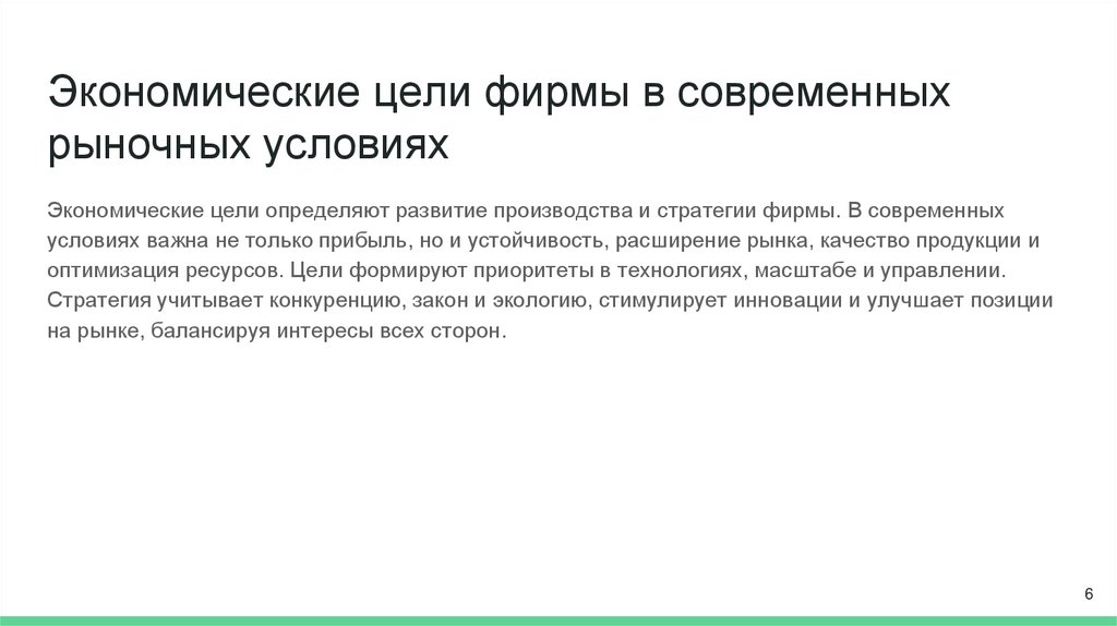 Экономические цели определяют развитие производства и стратегии фирмы. В современных