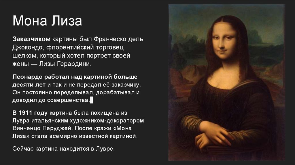 Лиза» стала всемирно известной картиной.