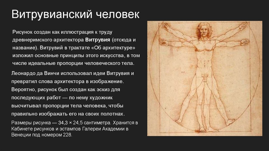 Витрувианский человекРисунок создан как иллюстрация к труду