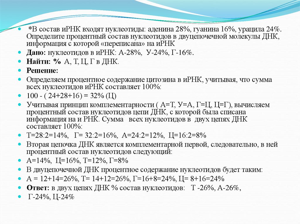 2. Молекулярная биология изучает механизмы хранения и передачи наследственной информации. Задачи по молекулярной биологии