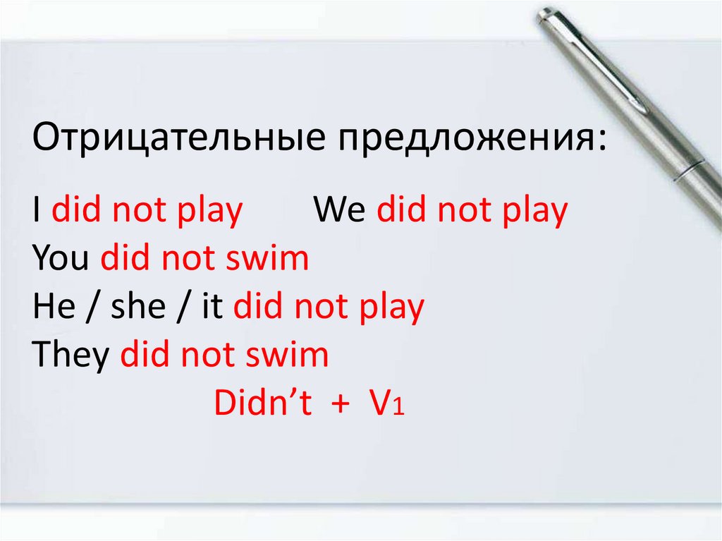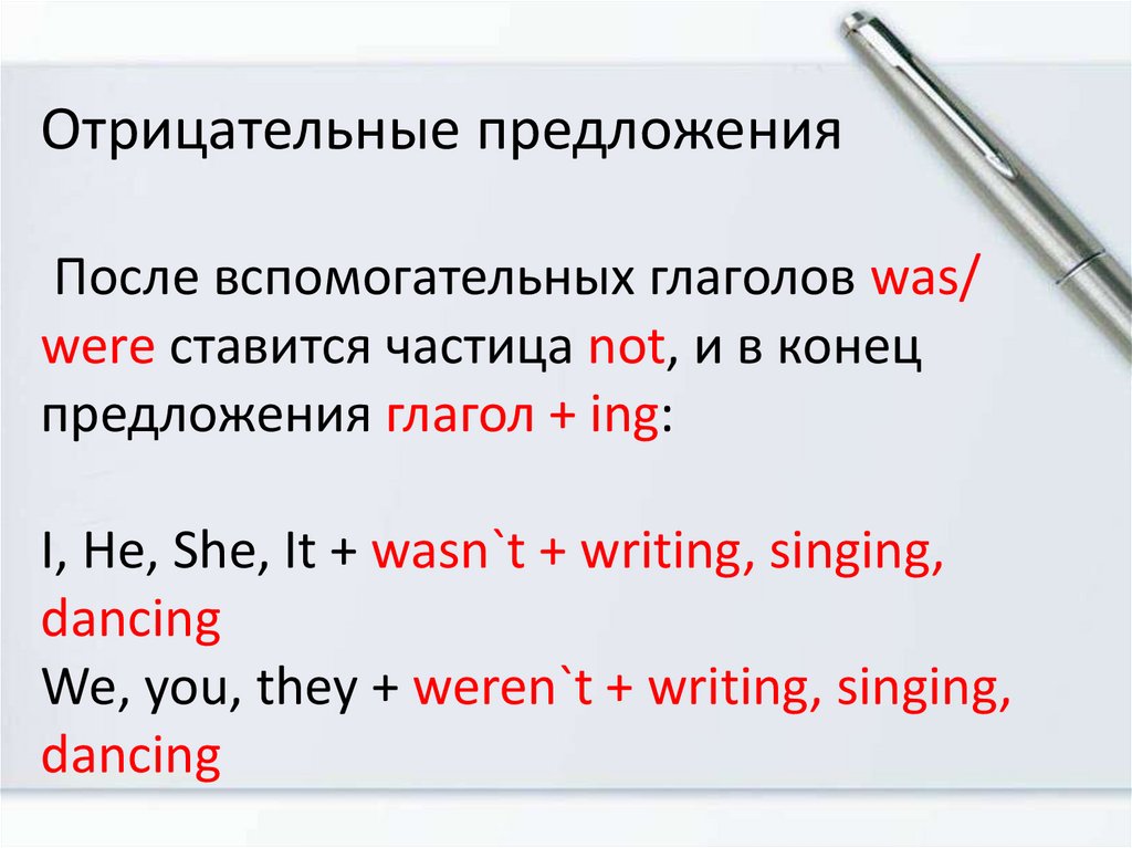 Отрицательные предложенияПосле вспомогательных глаголов was/