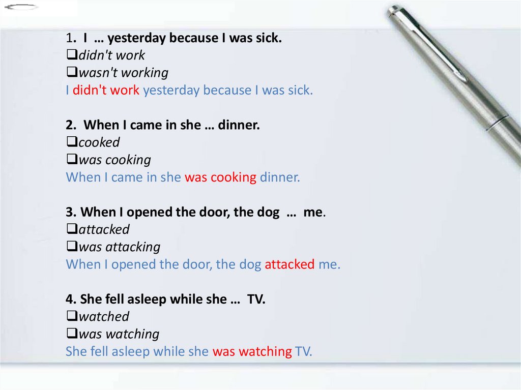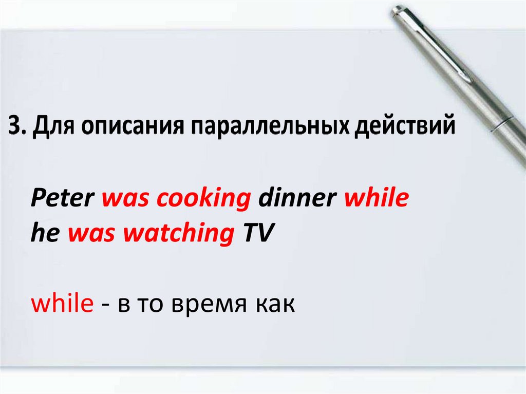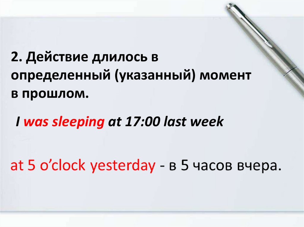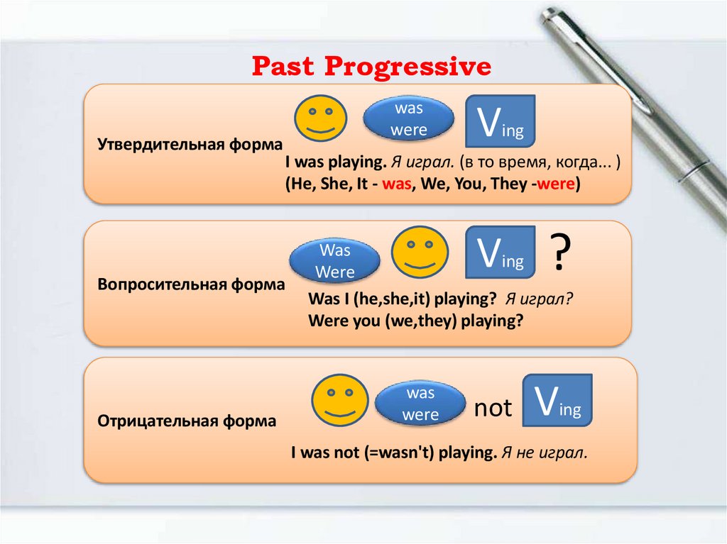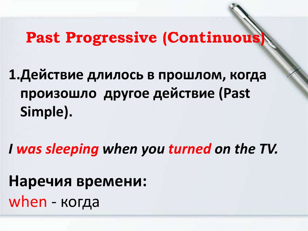 Past Progressive (Continuous)1.Действие длилось в прошлом, когда