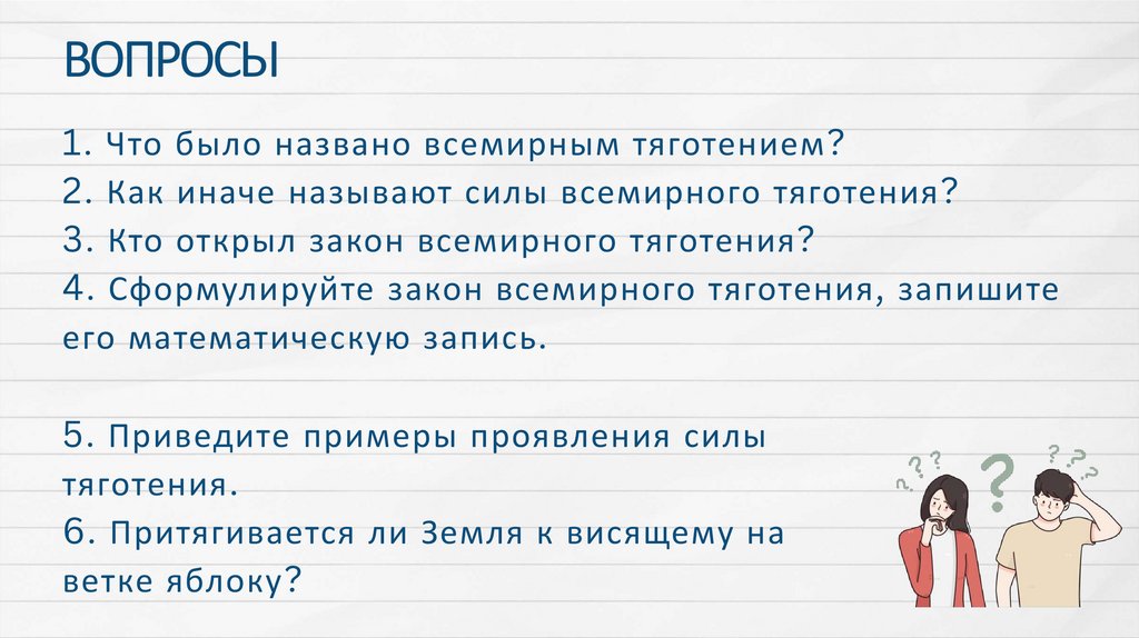 ВОПРОСЫ1. Что было названо всемирным тяготением?