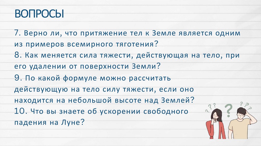 ВОПРОСЫ7. Верно ли, что притяжение тел к Земле является одним