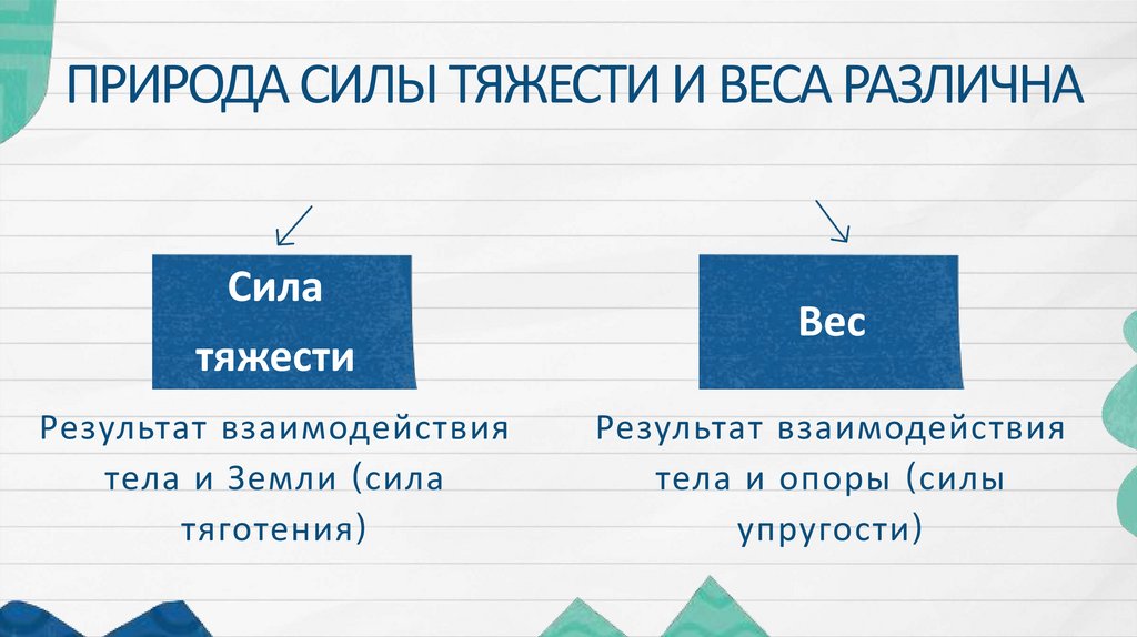 ПРИРОДА СИЛЫ ТЯЖЕСТИ И ВЕСА РАЗЛИЧНАСила