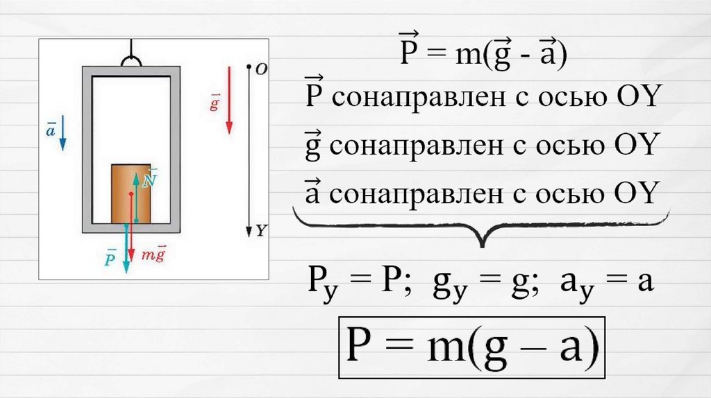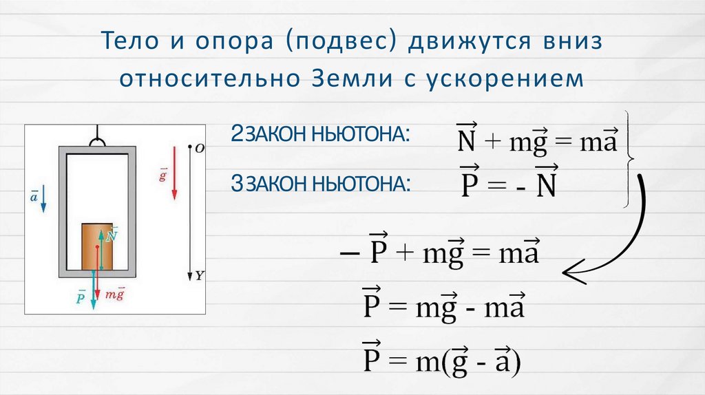 Тело и опора (подвес) движутся внизотносительно Земли с ускорением