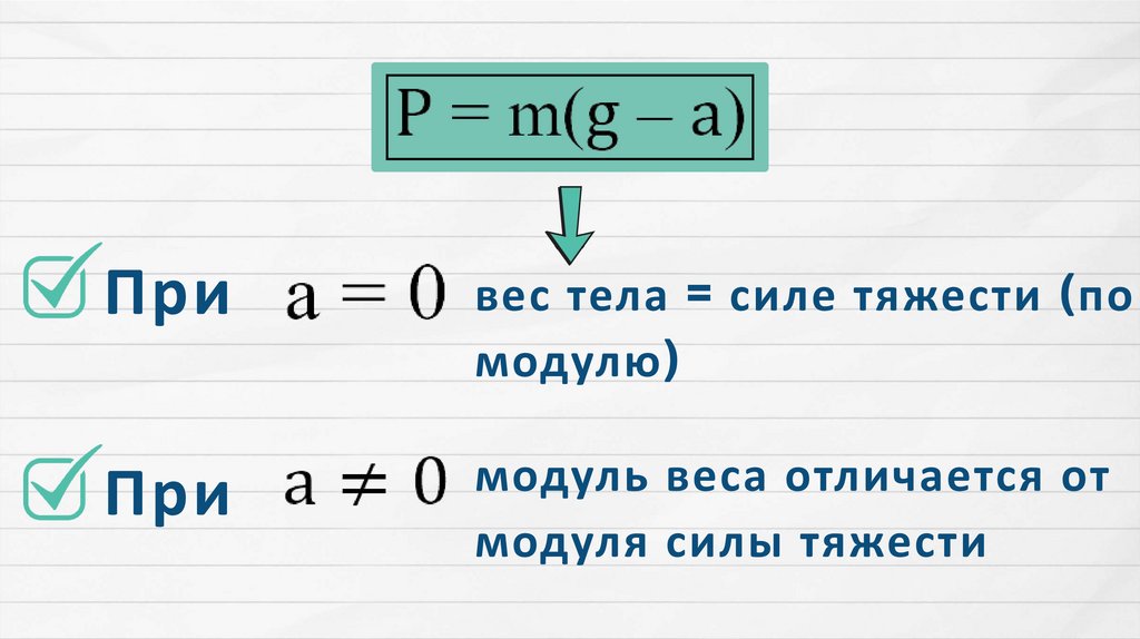 ВЕС ТЕЛА < СИЛЫ ТЯЖЕСТИ