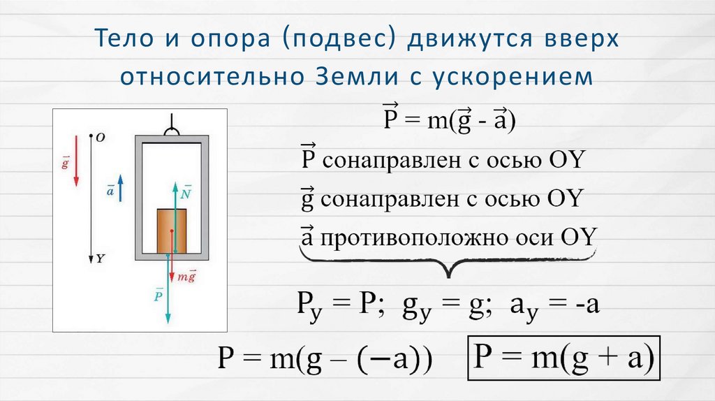 Тело и опора (подвес) движутся вверхотносительно Земли с ускорением