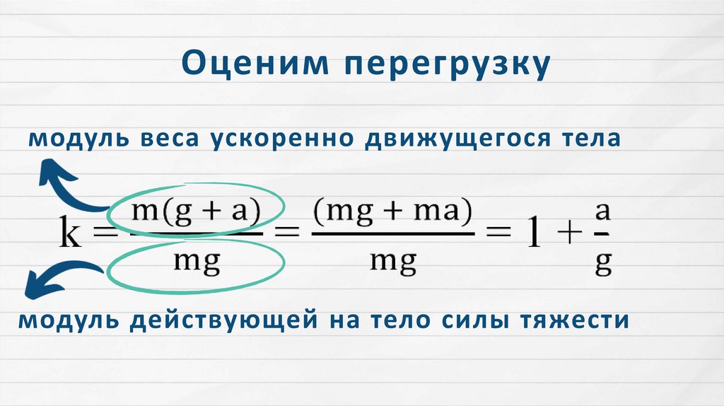 Оценим перегрузкумодуль веса ускоренно движущегося тела