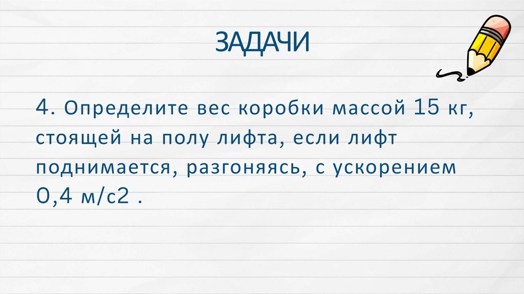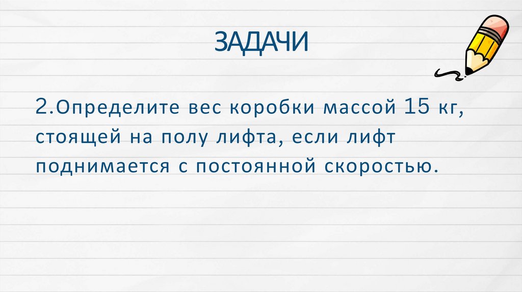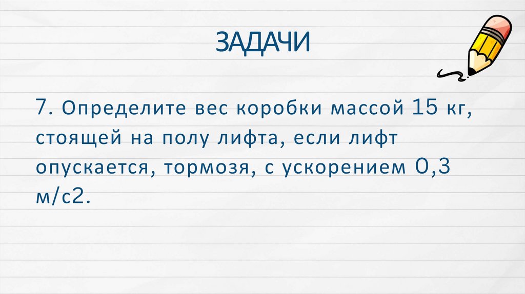 ЗАДАЧИ7. Определите вес коробки массой 15 кг,