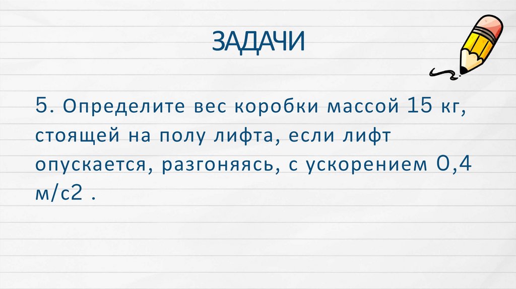 ЗАДАЧИ5. Определите вес коробки массой 15 кг,