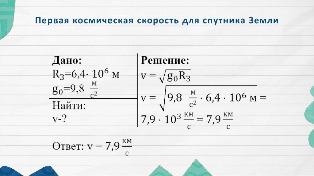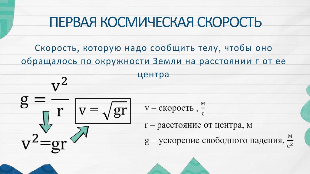 ПЕРВАЯ КОСМИЧЕСКАЯ СКОРОСТЬСкорость, которую надо сообщить телу, чтобы оно