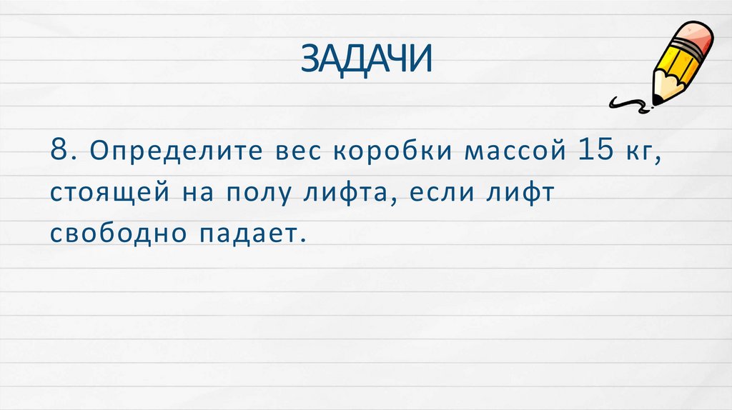 ЗАДАЧИ8. Определите вес коробки массой 15 кг,