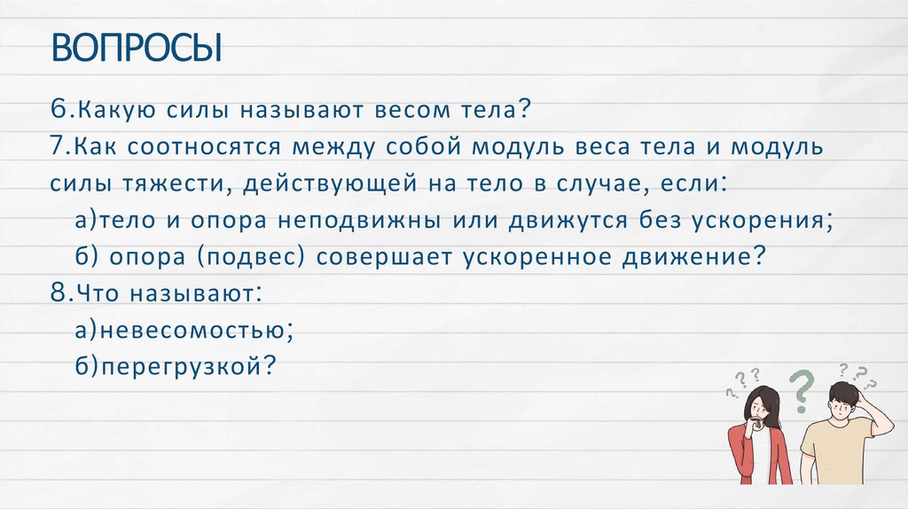 ВОПРОСЫ6.Какую силы называют весом тела?