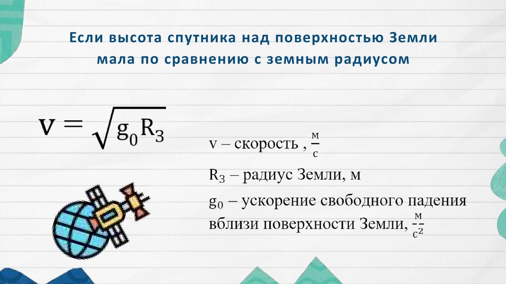 Если высота спутника над поверхностью Землимала по сравнению с земным радиусом