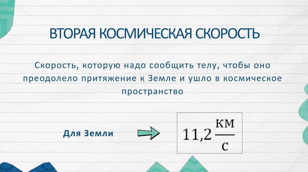 ВТОРАЯ КОСМИЧЕСКАЯ СКОРОСТЬСкорость, которую надо сообщить телу, чтобы оно
