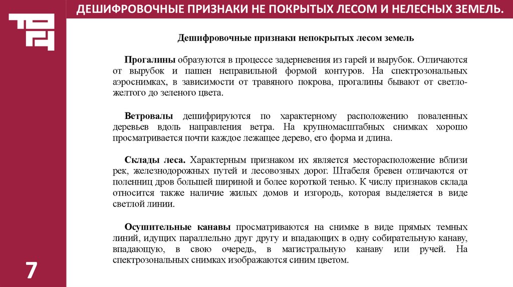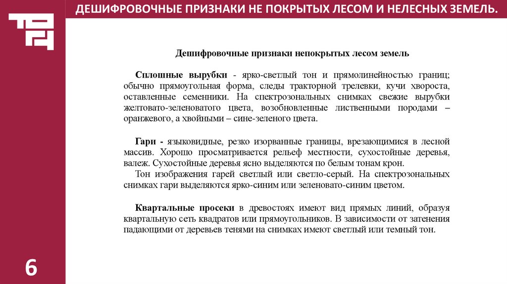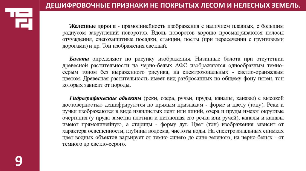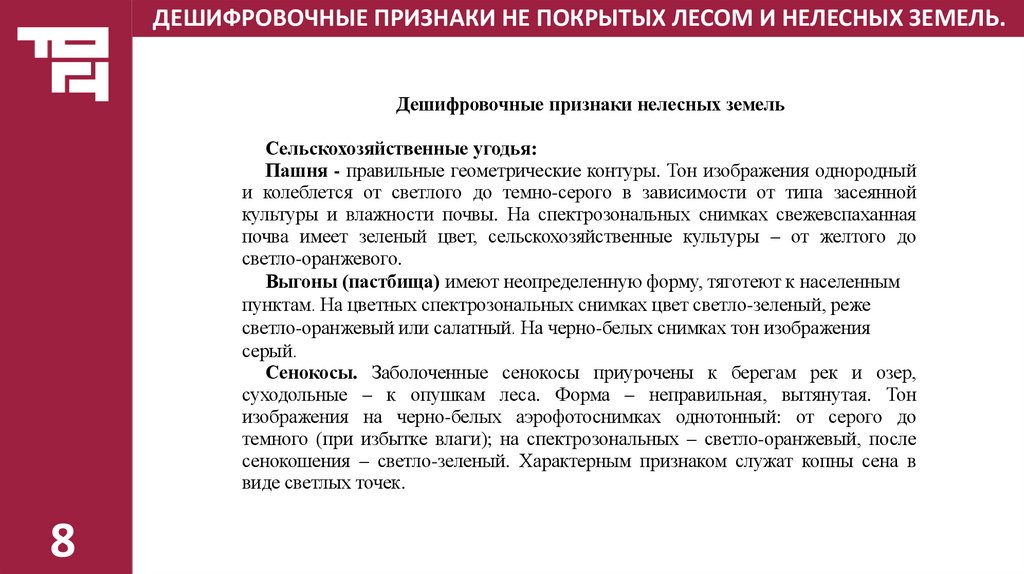 ДЕШИФРОВОЧНЫЕ ПРИЗНАКИ НЕ ПОКРЫТЫХ ЛЕСОМ И НЕЛЕСНЫХ ЗЕМЕЛЬ.Дешифровочные признаки нелесных земель