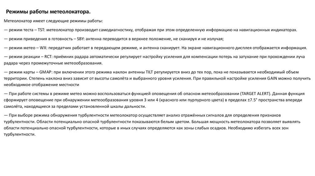 параллельно с данными метео. TRB может включаться только в режиме WX в диапазоне 50 n. mile или менее;
