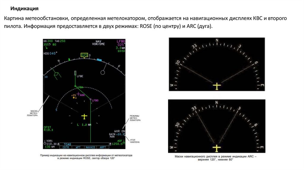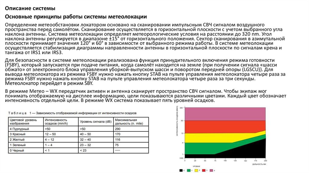 наклона антенны. Система метеолокации определяет метеорологические условия на расстоянии до 320 nm. Угол