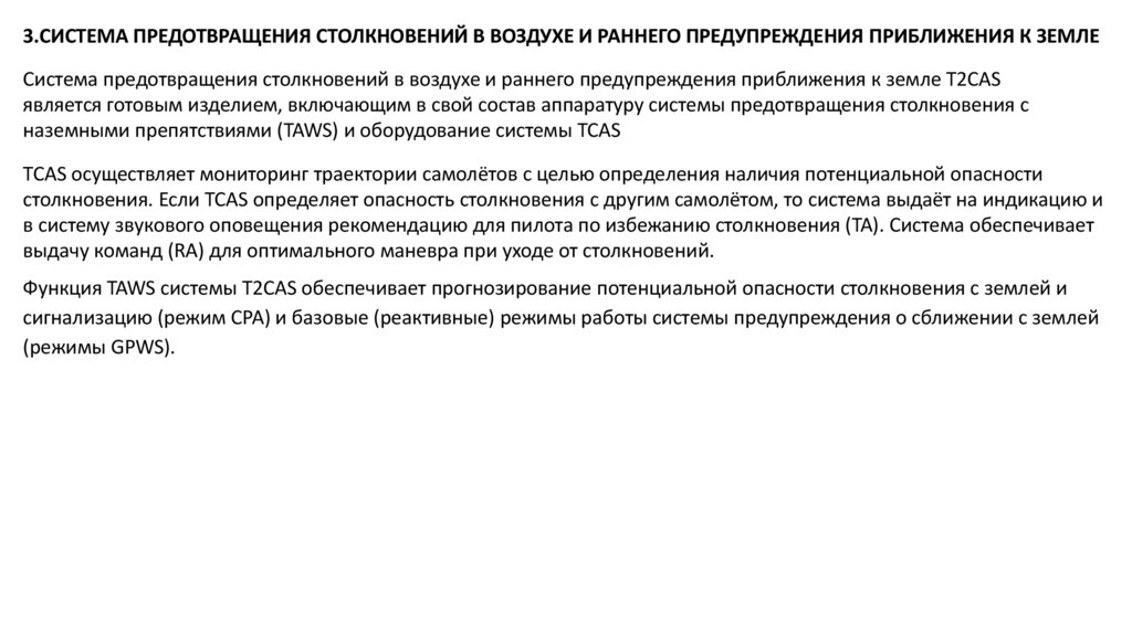 3.СИСТЕМА ПРЕДОТВРАЩЕНИЯ СТОЛКНОВЕНИЙ В ВОЗДУХЕ И РАННЕГО ПРЕДУПРЕЖДЕНИЯ ПРИБЛИЖЕНИЯ К ЗЕМЛЕ