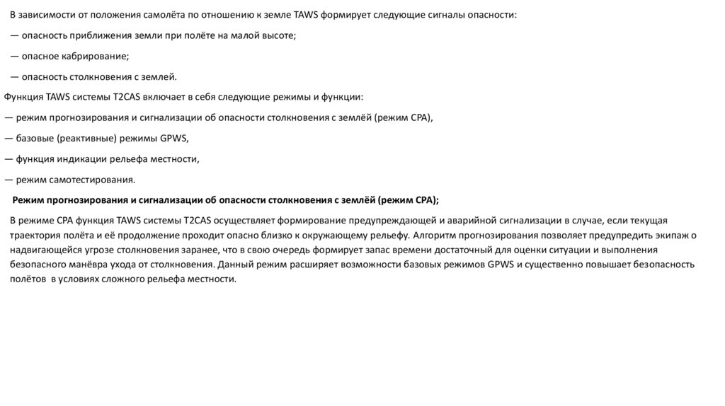 к земле (T2CAS) (см. 34-43-00 ) служит для предупреждения столкновения в воздухе,