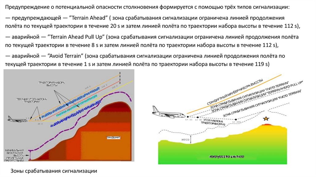 А) Предупреждения столкновений самолётов в воздухе и столкновения самолета с рельефом