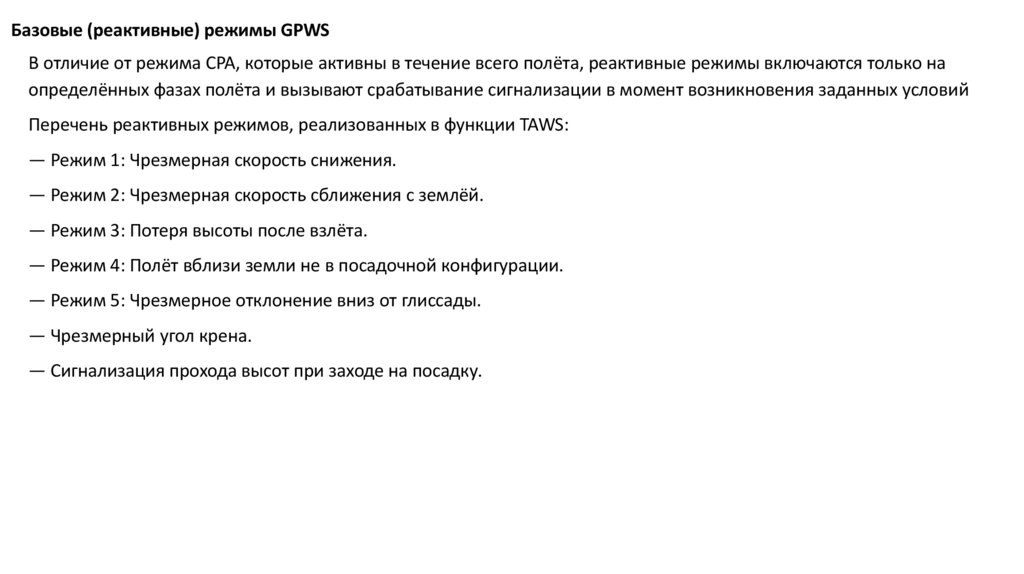 9.Сколько существует базовых (реактивных) режимов GPWS RRJ-95?