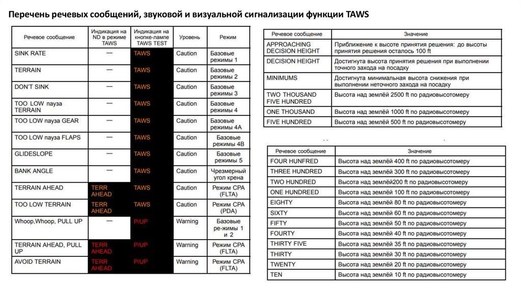 4. Режим «Чрезмерная скорость снижения» GPWS (Ground Proximity Warning System) RRJ-95 отслеживает такие параметры, как: