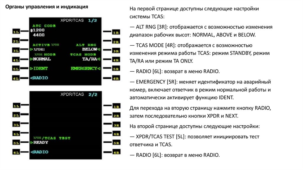 настройки ответчиков и TCAS (XPDR/TCAS). Для входа на данные страницы