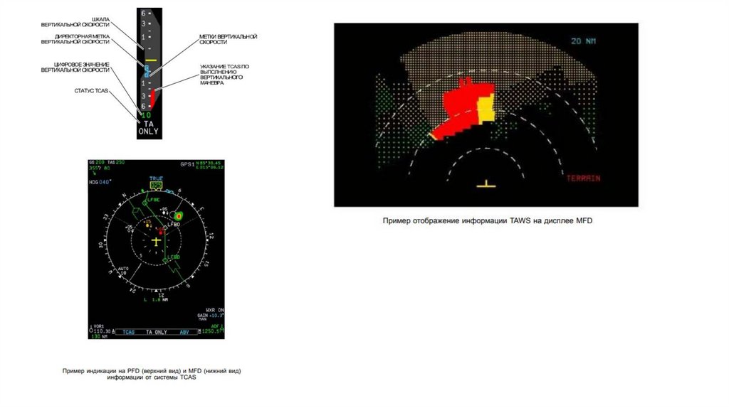 отображение рельефа местности. Информация отображается на дисплеях MFD.