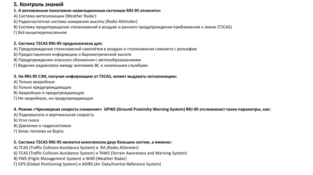 5. Контроль знаний1. К автономным пилотажно-навигационным системам RRJ-95 относится: