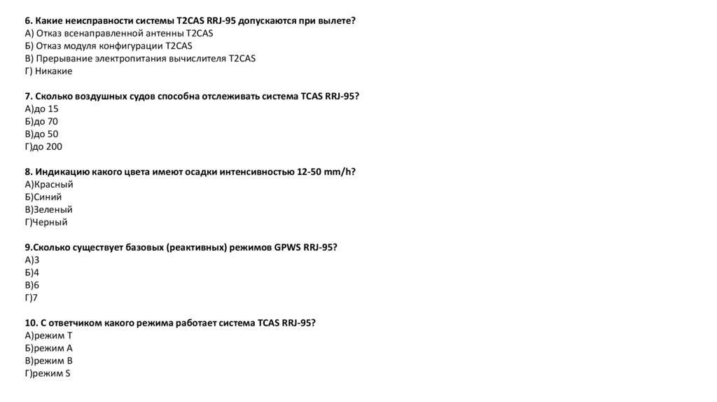 6. Какие неисправности системы T2CAS RRJ-95 допускаются при вылете?А) Отказ всенаправленной антенны T2CAS