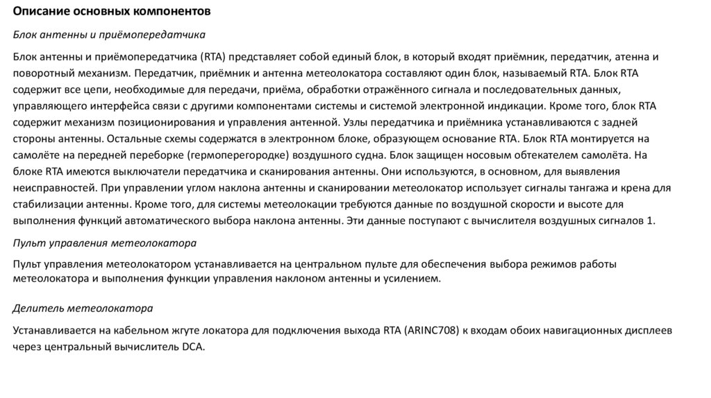 стороны антенны. Остальные схемы содержатся в электронном блоке, образующем основание RTA. Блок RTA монтируется на