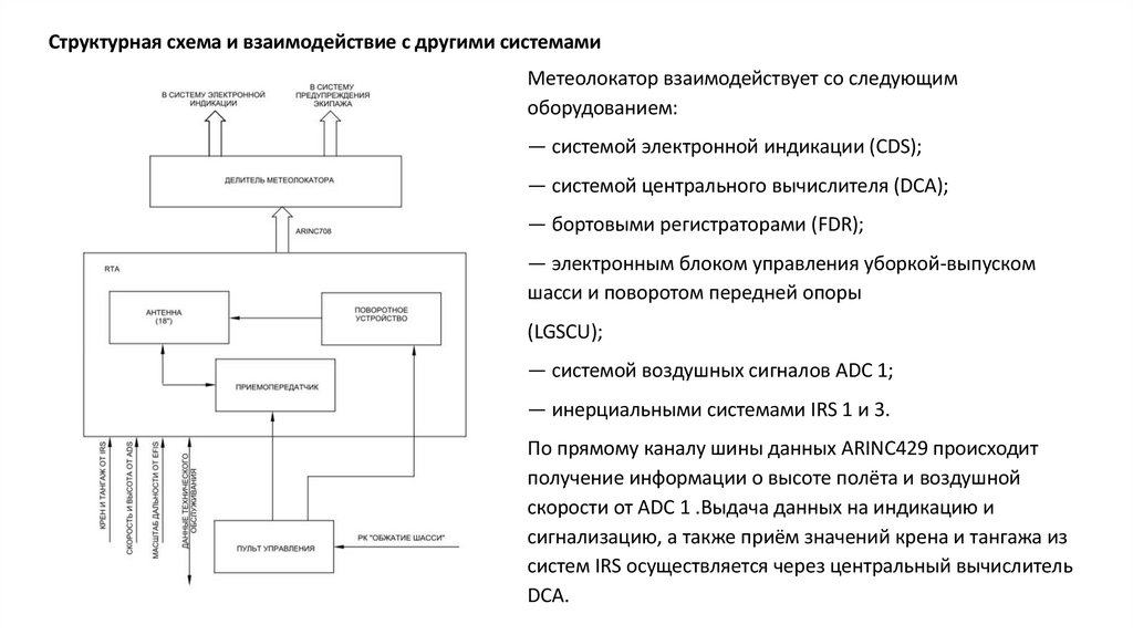 стабилизации антенны. Кроме того, для системы метеолокации требуются данные по воздушной скорости и высоте для