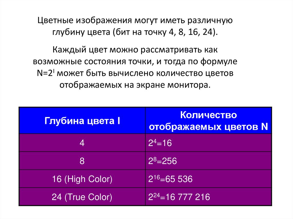 • Каждый из этих цветов может принимать