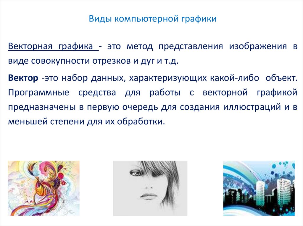 Под видами компьютернойграфики подразумевается способ