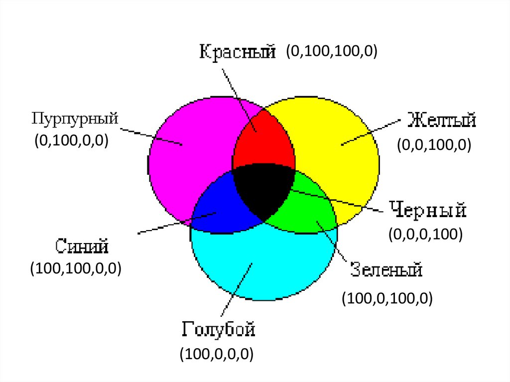 печати. Комбинируя эти краски вы получаете полноцветную