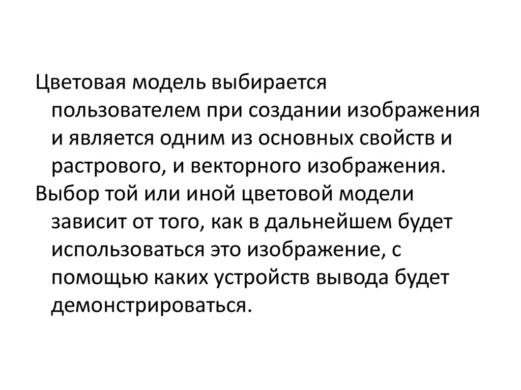 Цветовая модель выбираетсяпользователем при создании изображения