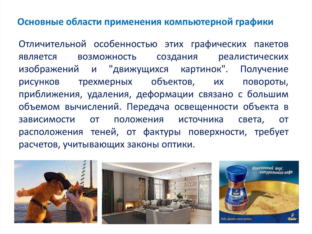 Основные области применения компьютерной графикиОтличительной особенностью этих графических пакетов