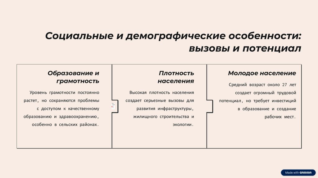 Социальные и демографические особенности:вызовы и потенциал