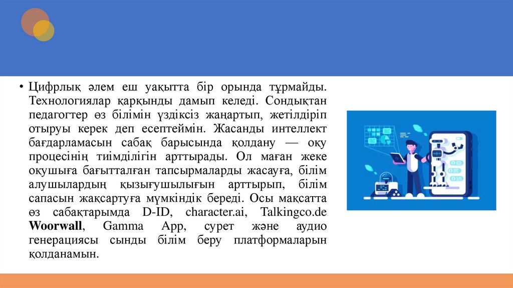 • Цифрлық әлем еш уақытта бір орында тұрмайды.Технологиялар қарқынды дамып келеді. Сондықтан