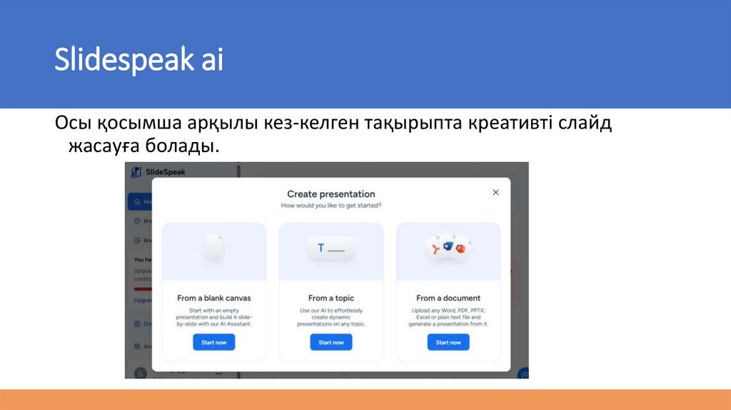 Slidespeak aiОсы қосымша арқылы кез-келген тақырыпта креативті слайд