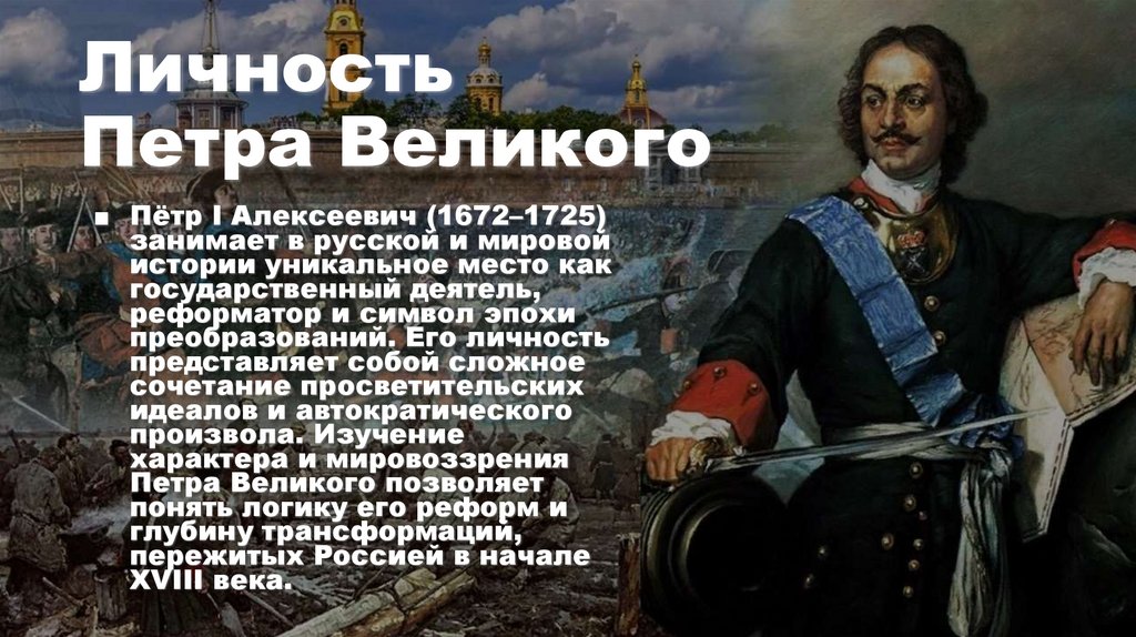 ■ Пётр I Алексеевич (1672–1725)занимает в русской и мировой