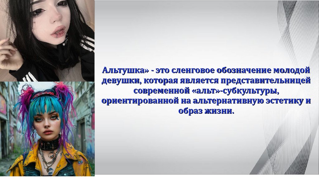 Альтушка» - это сленговое обозначение молодойдевушки, которая является представительницей