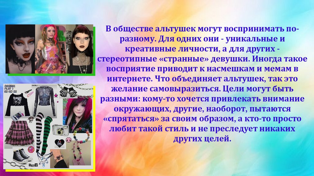 В обществе альтушек могут воспринимать поразному. Для одних они - уникальные икреативные личности, а для других стереотипные «странные» девушки. Иногда такое