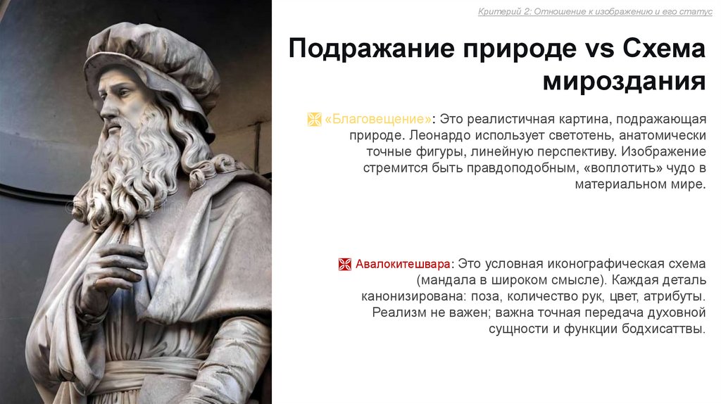 Критерий 2: Отношение к изображению и его статусПодражание природе vs Схема