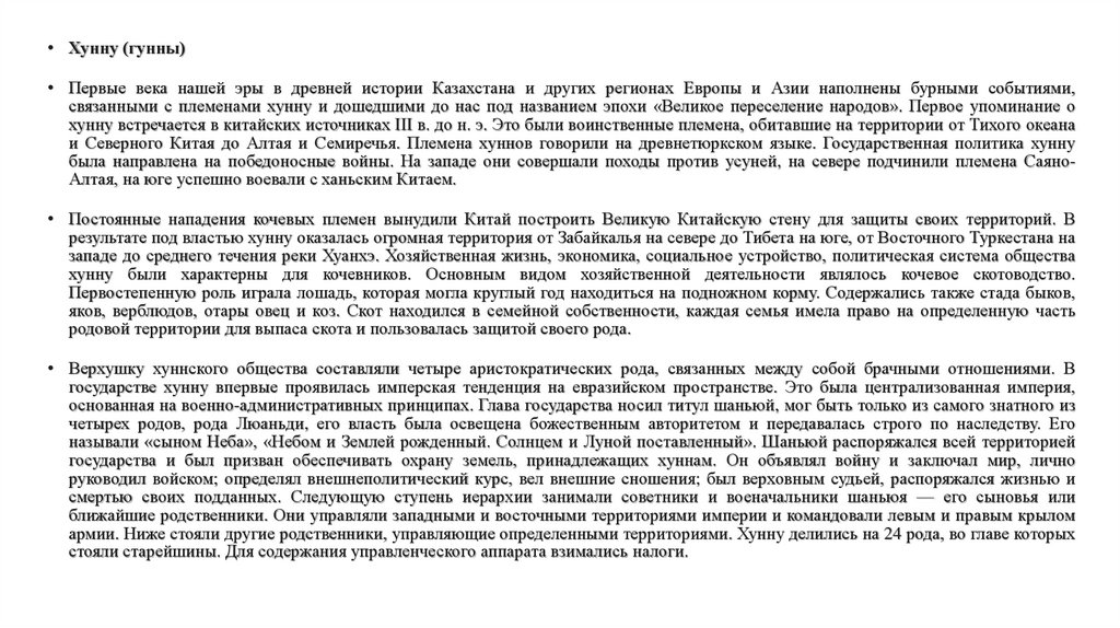 • Хунну (гунны)• Первые века нашей эры в древней истории Казахстана и других регионах Европы и Азии наполнены бурными событиями,