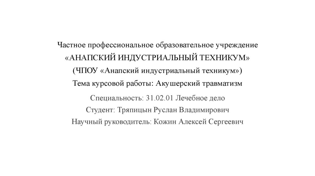 Частное профессиональное образовательное учреждение«АНАПСКИЙ ИНДУСТРИАЛЬНЫЙ ТЕХНИКУМ»