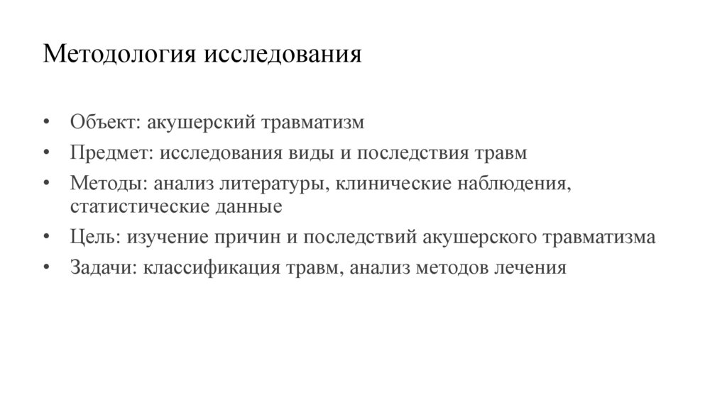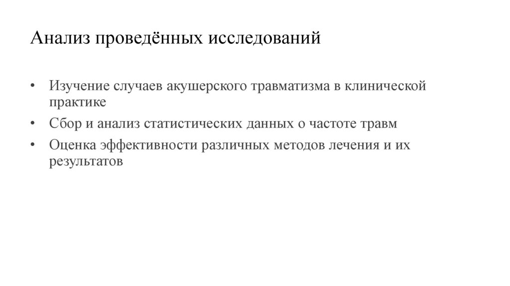 Анализ проведённых исследований• Изучение случаев акушерского травматизма в клинической